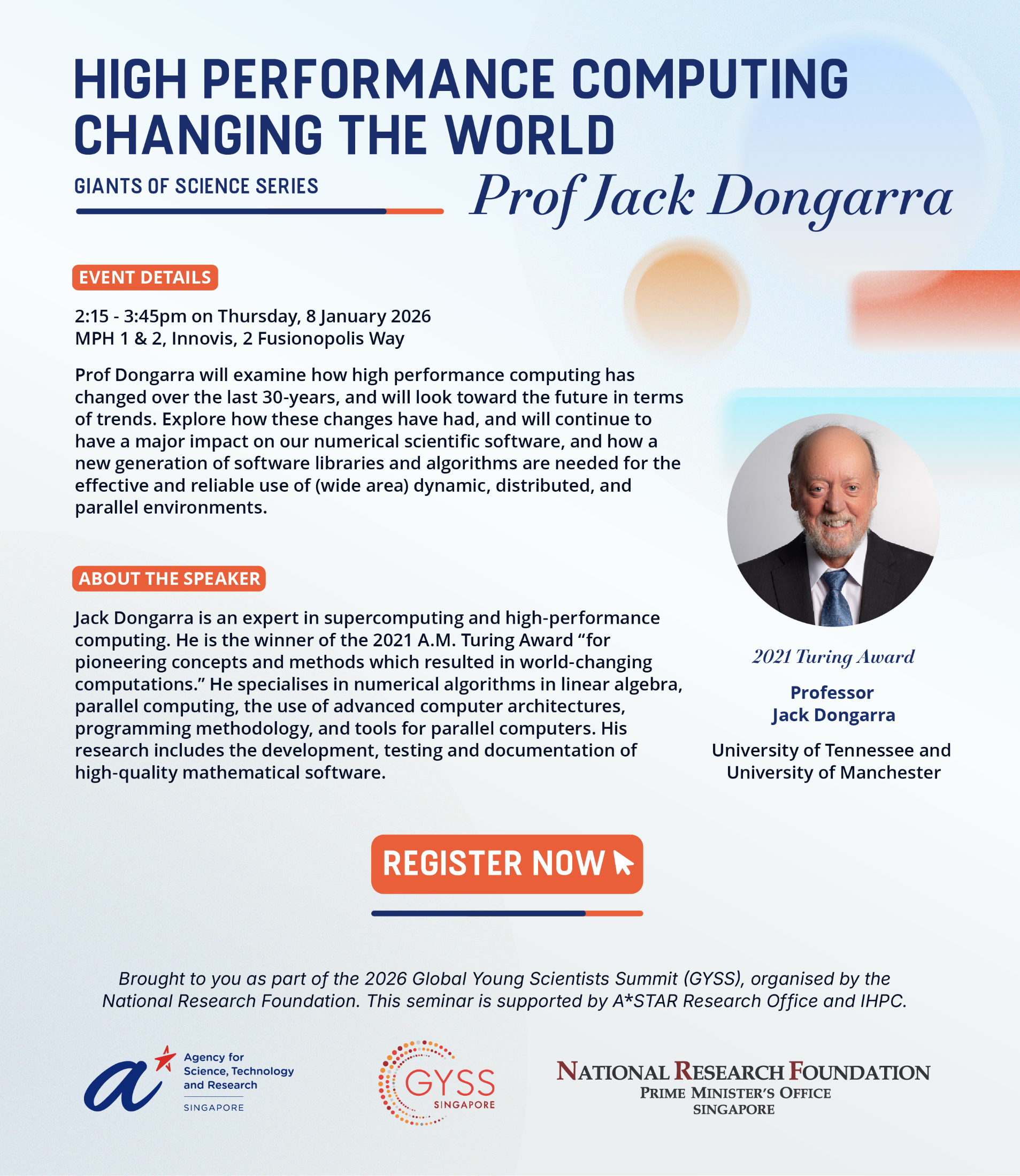 Throughout the week of the GYSS 2026, the laureates will also be giving talks at various partner events across Singapore. These events are open to the public.